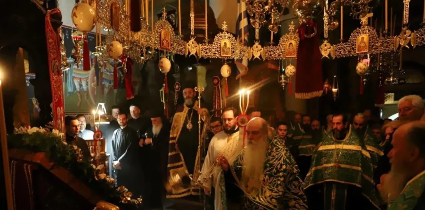 Στην Ιστορική Ιερά Μονή Αγίας Λαύρας, όπου φυλάσσεται η τιμία κάρα του Αγίου, τελέσθηκε πανηγυρικός Αρχιερατικός Εσπερινός χοροστατούντος του Σεβασμιωτάτου Μητροπολίτου Παραμυθίας, Φιλιατών και Γηρομερίου κ. Σεραπίωνος και συγχοροστατούντος του Σεβασμιωτάτου Μητροπολίτου Καλαβρύτων και Αιγιαλείας κ. Ιερωνύμου