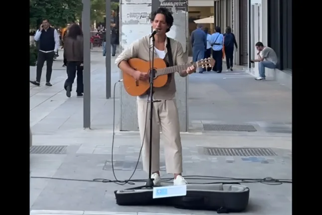 Ο Πάνος Βλάχος βρέθηκε στην Ερμού με την κιθάρα του και τραγούδησε μπροστά σε περαστικούς, χαρίζοντας μια απρόσμενη μουσική στιγμή στο κέντρο της Αθήνας.