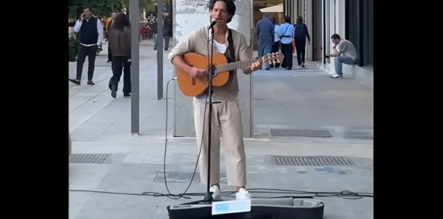 Σε βίντεο που ανέβηκε στο TikTok την Τρίτη 21 Απριλίου, ο καλλιτέχνης φαίνεται να ερμηνεύει το τραγούδι «Συμπτώματα», ενώ κόσμος που περνούσε από το σημείο σταμάτησε για να τον παρακολουθήσει και να καταγράψει τη στιγμή με τα κινητά του.