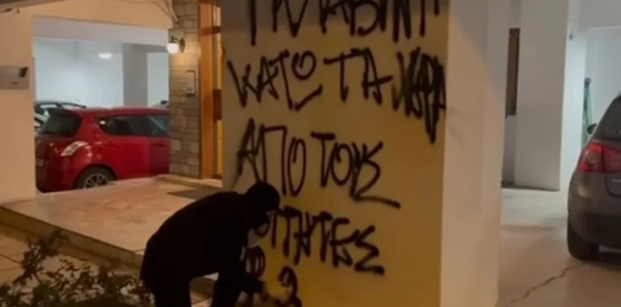 Το σύνθημα που έγραψαν στην είσοδο της πολυκατοικίας ανέφερε χαρακτηριστικά: «ΓΚΛΑΒΙΝΗ ΚΑΤΩ ΤΑ ΧΕΡΙΑ ΑΠΟ ΤΟΥΣ ΦΟΙΤΗΤΕΣ».