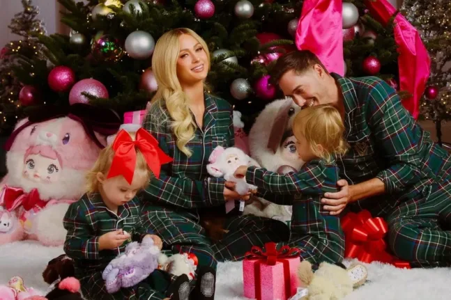 Η Paris Hilton μοιράστηκε στο Instagram μια σειρά από γιορτινές φωτογραφίες με τον σύζυγο Carter Reum και τα μικρά Phoenix και London, φορώντας ταιριαστές χριστουγεννιάτικες πιτζάμες σε μια ζεστή και λαμπερή παραγωγή