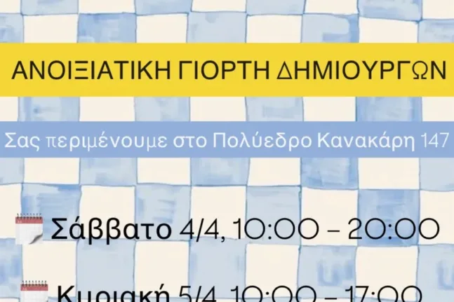Ένα ξεχωριστό ανοιξιάτικο διήμερο γεμάτο δημιουργία, τέχνη και έμπνευση φιλοξενείται στην Πάτρα, καθώς το Πολύεδρο διοργανώνει την Ανοιξιάτικη Γιορτή Δημιουργών το Σάββατο 4 και την Κυριακή 5 Απριλίου.