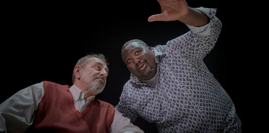 Ο Αντώνης Καφετζόπουλος υπογράφει τη μετάφραση και τη σκηνοθεσία και συμπρωταγωνιστεί με τον Ζερόμ Καλούτα σε μια σπαρακτική σύγκρουση δύο αντιδιαμετρικών κόσμων: πίστης και απόγνωσης, φωτός και σκότους.