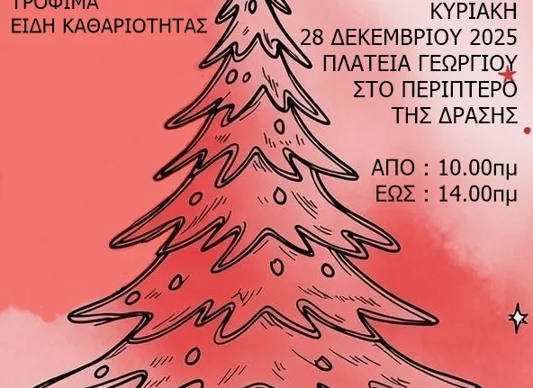 Καλούμε τους πολίτες της Πάτρας να συμμετάσχουν στη δράση συγκέντρωσης ειδών πρώτης ανάγκης (τρόφιμα μακράς διάρκειας, είδη υγιεινής, καθαριστικά κ.ά.), την Κυριακή 28 Δεκεμβρίου 2025, από τις 10:00 π.μ. έως τις 2:00 μ.μ., στην πλατεία Γεωργίου, στο τραπέζι που θα έχει στηθεί δίπλα στο πάνω σιντριβάνι.