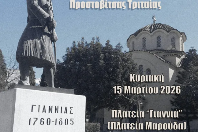Την Κυριακή 15 Μαρτίου 2026 θα πραγματοποιηθεί στην Πάτρα εκδήλωση μνήμης για τον προεπαναστατικό αγωνιστή Γιαννιά, με πρωτοβουλία του Πολιτιστικού και Περιβαλλοντικού Συλλόγου Δροσιάς Τριταίας «Οι Γιαννιάδες».