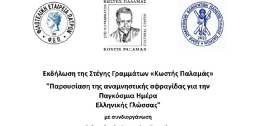 Με αφορμή την Παγκόσμια Ημέρα Ελληνικής Γλώσσας, πραγματοποιείται την Δευτέρα, 9/02/2026, στις 19:00, στην Πάτρα, εκδήλωση με τίτλο «Παρουσίαση της αναμνηστικής σφραγίδας για την Παγκόσμια Ημέρα Ελληνικής Γλώσσας».