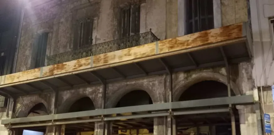 Παρά την τοποθέτηση μεταλλικής σιδηροκατασκευής στην πρόσοψη ως προσωρινό μέτρο προστασίας, η κατάσταση του κτηρίου προκαλεί ανησυχία. Σοβάδες που αποκολλώνται και φθορές της παλιάς τοιχοποιίας μπορούν ανά πάσα στιγμή να πέσουν στον δρόμο, θέτοντας σε άμεσο κίνδυνο πεζούς και οδηγούς.
