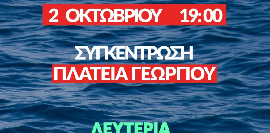 Συγκέντρωση αλληλεγγύης με σύνθημα «Λευτεριά στην Παλαιστίνη», έχει προγραμματιστεί για σήμερα Πέμπτη 2/10/2025, στις 7 το απόγευμα στην πλατεία Γεωργίου.