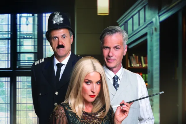 Ένας φόνος ,δεκαέξι ύποπτοι! Με χιούμορ και κωμικές ανατροπές, η παράσταση μας εισάγει σε έναν κόσμο μυστηρίου, όπου ο επιθεωρητής Ντρέικ και ο αρχιφύλακας Πλόντ προσπαθούν να διαλευκάνουν ένα περίπλοκο έγκλημα. Η σκηνοθεσία του Βασίλη Θωμόπουλου αναδεικνύει τον σατιρικό χαρακτήρα του Tristram, μεταφέροντας το κοινό σε μια θεότρελη ατμόσφαιρα μυστηρίου που προσφέρουν γέλιο και ψυχαγωγία. Πρόκειται για μια μοναδική εμπειρία που συνδυάζει το κλασικό ύφος των αστυνομικών ιστοριών με την κωμική αίσθηση του Tristram, δημιουργώντας μια παράσταση που θα ενθουσιάσει το κοινό όλων των ηλικιών. Μη χάσετε την ευκαιρία να παρακολουθήσετε την πρώτη Ελληνική εκδοχή του “ο Επιθεωρητής Ντρέικ και η Μαύρη χήρα ” και να ζήσετε από κοντά τις περιπέτειες του ιδιόρρυθμου επιθεωρητή Ντρέικ.
