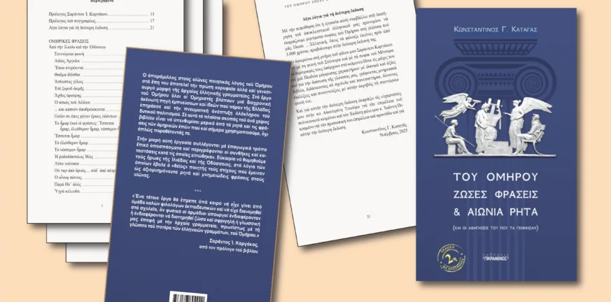 Σε δεύτερη, εμπλουτισμένη έκδοση κυκλοφορεί στην Πάτρα το βιβλίο «Του Ομήρου Ζώσες Φράσεις & Αιώνια Ρητά», φωτίζοντας τη διαχρονική δύναμη του ομηρικού λόγου και τις αφηγήσεις που γέννησαν φράσεις ζωντανές μέχρι σήμερα.