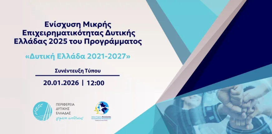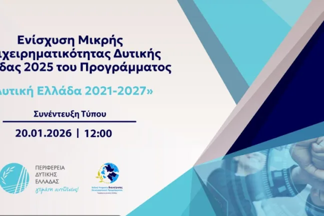 Η δράση «Εκσυγχρονισμός Μικρών Επιχειρήσεων Δυτικής Ελλάδας 2025» χρηματοδοτείται από το Επιχειρησιακό Πρόγραμμα «Δυτική Ελλάδα 2021-2027» και προκηρύχθηκε τον περασμένο Δεκέμβριο, με στόχο την ενίσχυση της ανταγωνιστικότητας και τη στήριξη μικρών επιχειρήσεων της Περιφέρειας.