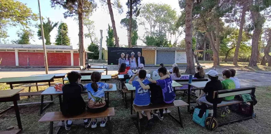Η δράση αφορά στη μεταφορά μιας σχολικής ημέρας στον χώρο των εγκαταστάσεων του Πάρκου στην Πλαζ της Αγυιάς, όπου έχει στηθεί δύο σχολική αίθουσα στην ύπαιθρο (θρανία, πίνακας, έδρα).