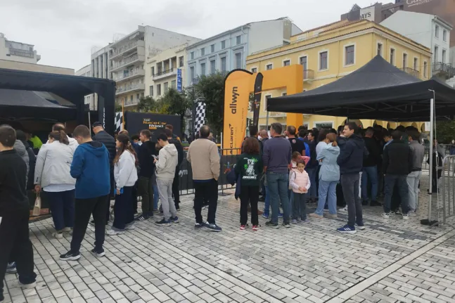 Από τις πρώτες ώρες της εκδήλωσης, δεκάδες επισκέπτες περίμεναν υπομονετικά στην ουρά, αψηφώντας τις κακές καιρικές συνθήκες, προκειμένου να θαυμάσουν από κοντά το πιστό αντίγραφο του μονοθεσίου της McLaren, στον ειδικά διαμορφωμένο χώρο.