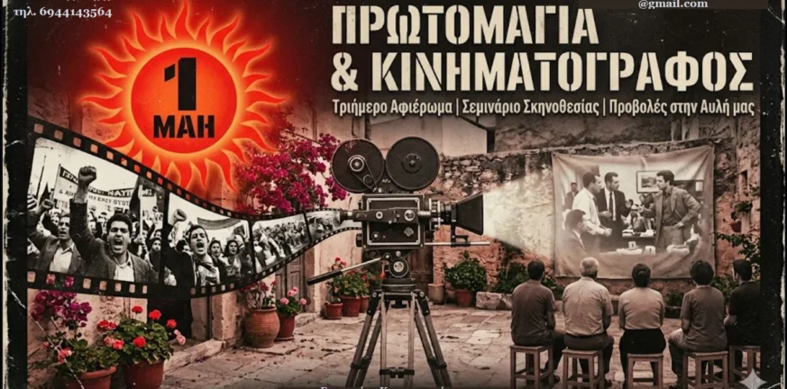 Ένα τριήμερο αφιερωμένο στον πολιτικό κινηματογράφο, με προβολές, αναλύσεις και ανοιχτό σεμινάριο σκηνοθεσίας, οργανώνεται στην Πάτρα από 1 έως 3 Μαΐου. Η πρωτοβουλία φέρνει στο προσκήνιο το σινεμά της διεκδίκησης και της κοινωνικής ματιάς, μετατρέποντας αυλές και δημόσιους χώρους σε σημεία κινηματογραφικής παιδείας.