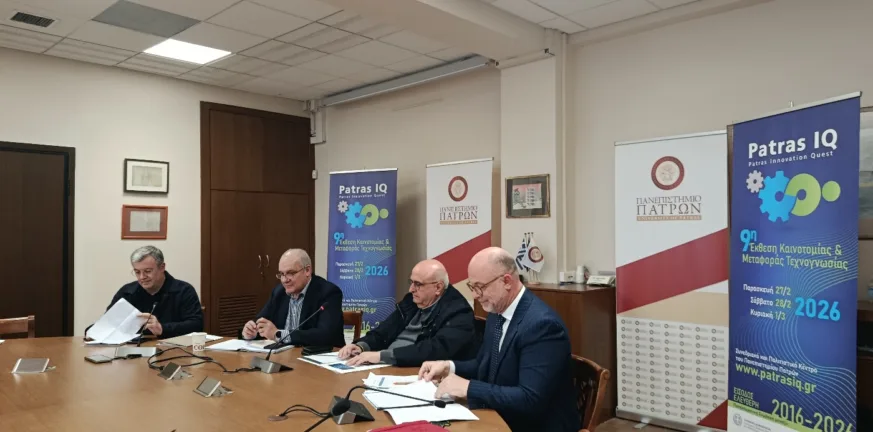 Με αφορμή την έναρξη της 9ης Έκθεσης Καινοτομίας και Μεταφοράς Τεχνογνωσίας – Patras IQ 2026, πραγματοποιήθηκε στο Πανεπιστήμιο Πατρών, συνέντευξη Τύπου, σήμερα Τετάρτη 25/02/2026.