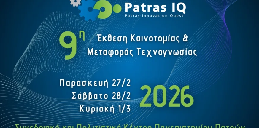 Η 9η Έκθεση Καινοτομίας και Μεταφοράς Τεχνογνωσίας Patras IQ – Patras Innovation Quest 2026 πραγματοποιείται από τις 27 Φεβρουαρίου έως την 1η Μαρτίου στο Συνεδριακό και Πολιτιστικό Κέντρο του Πανεπιστημίου Πατρών, με ελεύθερη πρόσβαση για το κοινό. Πρόκειται για έναν καθιερωμένο θεσμό που αναδεικνύει τη σύνδεση της επιστημονικής έρευνας με την καινοτομία, την επιχειρηματικότητα και τις ανάγκες της κοινωνίας.