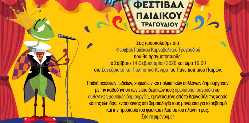 Πατρινό Καρναβάλι 2026: Φεστιβάλ Παιδικού Καρναβαλικού Τραγουδιού το Σάββατο στο Πανεπιστήμιο Πατρών