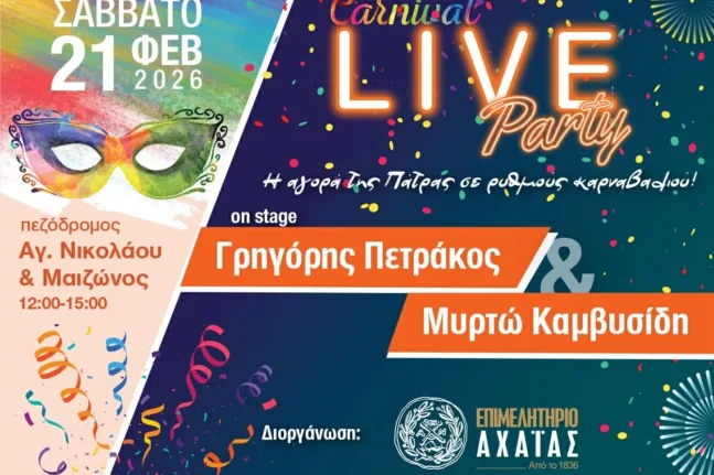 Με μια τρίωρη μουσική εκδήλωση στον πεζόδρομο της Μαιζώνος, το Επιμελητήριο Αχαΐας επιχειρεί να ενισχύσει την εμπορική κίνηση στο ιστορικό κέντρο, αξιοποιώντας τη δυναμική του Πατρινού Καρναβαλιού.