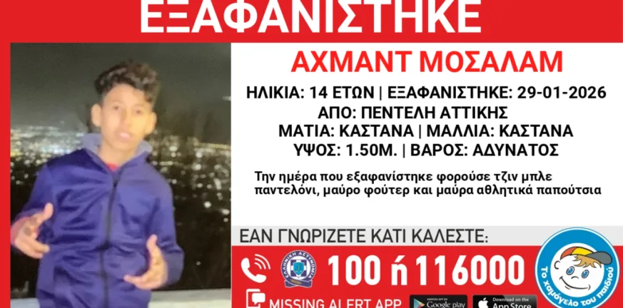 Ο ανήλικος Μοσαλάμ (επ) Αχμάντ (ον) με καταγωγή από την Αίγυπτο εξαφανίστηκε στις 29 Ιανουαρίου.