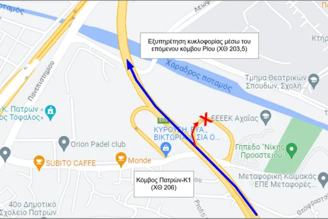 Κατά τη διάρκεια των εργασιών, η έξοδος του ανισόπεδου κόμβου Κ1 της Περιμετρικής Πατρών προς την οδό Διοδώρου στο ρεύμα προς Αθήνα θα παραμείνει κλειστή και η κυκλοφορία των οχημάτων θα πραγματοποιείται από τον ανισόπεδο κόμβο Ρίου.