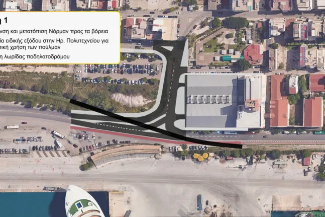 Την ίδια στιγμή, διευκρινίζεται ότι η συγκεκριμένη πρόταση δεν αποτελεί ολοκληρωμένη κυκλοφοριακή μελέτη, αλλά μια ενδεικτική προσέγγιση ως προς τη χωροθέτηση και την οργάνωση της κυκλοφορίας. Για την πλήρη τεκμηρίωσή της απαιτείται η εμπλοκή μελετητικού γραφείου και εξειδικευμένου συγκοινωνιολόγου, ώστε να σχεδιαστεί με ακρίβεια η τελική μορφή του κόμβου.