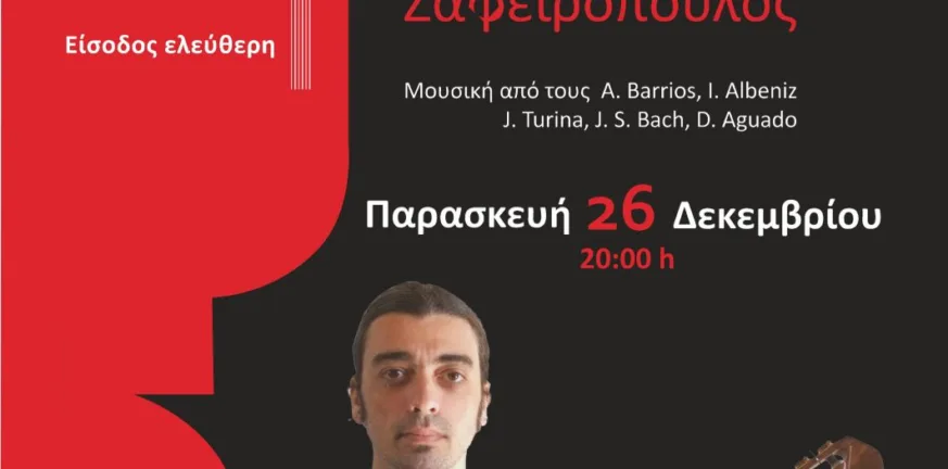 Ρεσιτάλ κλασικής κιθάρας με τον Βασίλη Ζαφειρόπουλο στο εορταστικό πρόγραμμα του Δήμου Ήλιδας