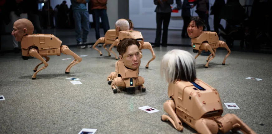 Ρομποτικά σκυλιά με υπερρεαλιστικά κεφάλια από σιλικόνη διάσημων προσωπικοτήτων περιφέρονται στους χώρους της Neue Nationalgalerie, τραβώντας τα βλέμματα και προκαλώντας συζητήσεις. Η πρωτότυπη αυτή εγκατάσταση συνδυάζει τέχνη, τεχνολογία και αιχμηρή σάτιρα, επαναπροσδιορίζοντας τη σχέση κοινού και «ειδώλων».