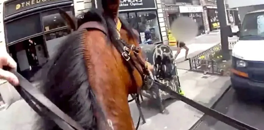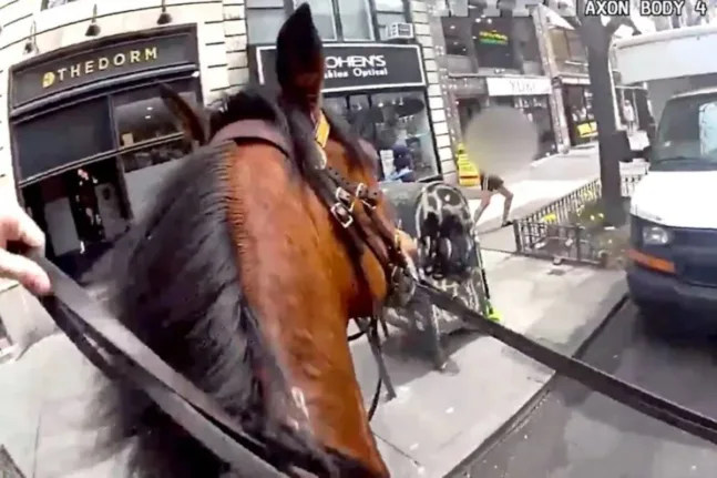 Δραματικές σκηνές εκτυλίχθηκαν στους δρόμους του Μανχάταν, όταν έφιππος αστυνομικός της NYPD καταδίωξε γυναίκα που κατηγορείται ότι άρπαξε τσάντα από τα πόδια θύματός της.
