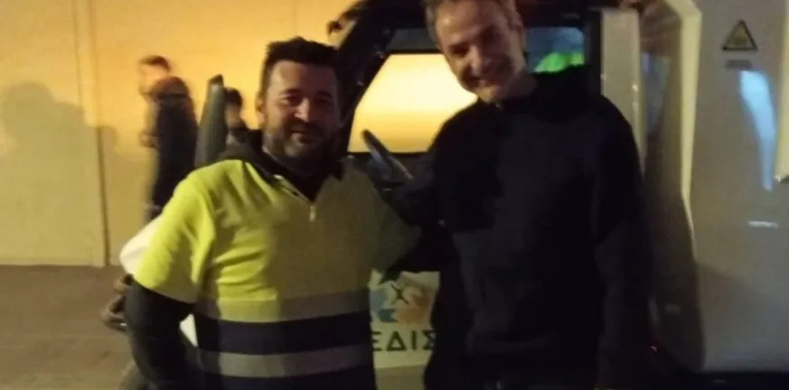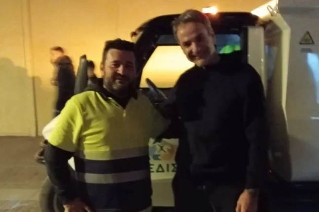 Στα Χανιά ο Κυριάκος Μητσοτάκης: Η φωτογραφία με εργαζόμενο στην καθαριότητα