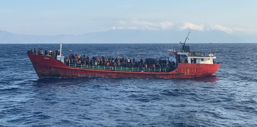 Ρυμουλκείται το τουρκικό πλοίο που μεταφέρει 450 μετανάστες και εξέπεμψε sos ανοιχτά της Κρήτης, από το Ελληνικό Λιμενικό Σώμα.