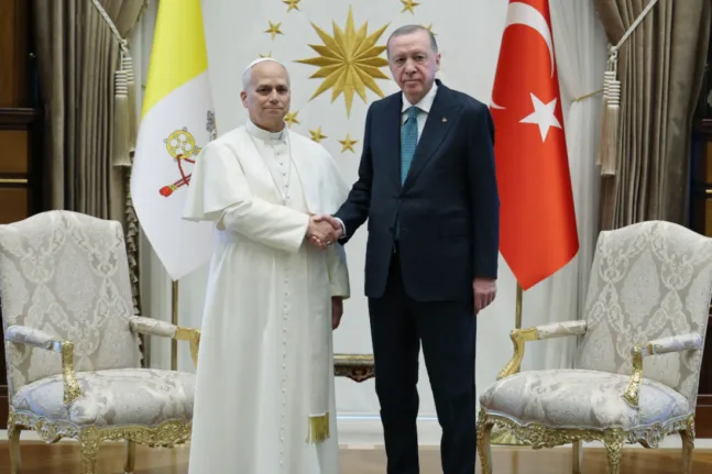 Αμέσως μετά, ο Πάπας Λέων μετέβη στο προεδρικό παλάτι, όπου πραγματοποιήθηκε επίσημη τελετή υποδοχής πριν από τη συνάντησή του με τον πρόεδρο Ρετζέπ Ταγίπ Ερντογάν.
