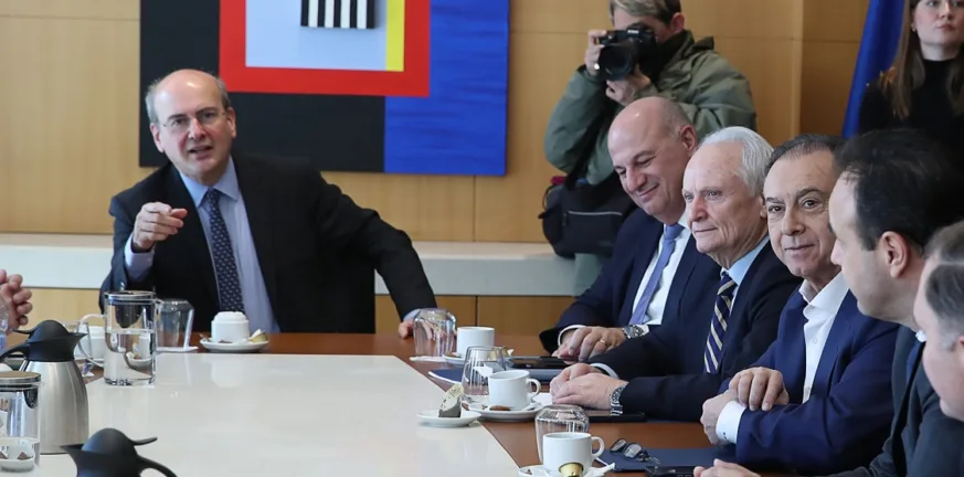 Στη σημερινή συνάντηση συμμετέχουν ο αντιπρόεδρος της κυβέρνησης, Κωστής Χατζηδάκης, ο υπουργός Αγροτικής Ανάπτυξης και Τροφίμων, Κώστας Τσιάρας, ο υπουργός Ψηφιακής Διακυβέρνησης, Δημήτρης Παπαστεργίου, καθώς και ο υφυπουργός Εθνικής Οικονομίας και Οικονομικών, Θάνος Πετραλιάς.