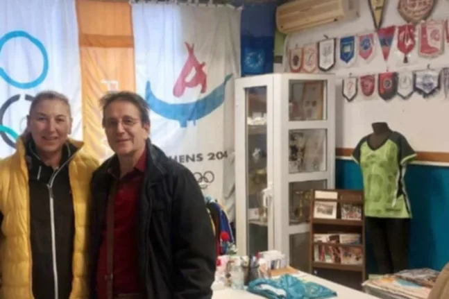 Στην φωτογραφία ο  Μάνος Νεόφυτος με την Βάσω Βουκελάτου όταν είχε επισκεφτεί πριν δύο χρόνια το Μουσείο χάντμπολ Πάτρας.