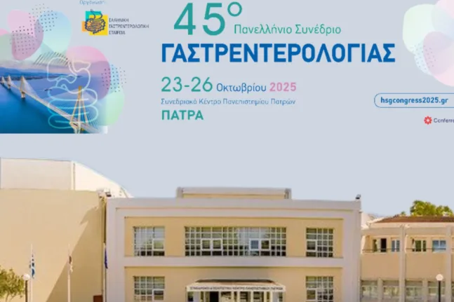 Το 45ο Πανελλήνιο Συνέδριο Γαστρεντερολογίας θα πραγματοποιηθεί στο Συνεδριακό & Πολιτιστικό Κέντρο του Πανεπιστημίου Πατρών από τις 23 έως τις 26 Οκτωβρίου 2025, φέρνοντας στην Πάτρα το επίκεντρο της επιστημονικής γνώσης και της καινοτομίας στη γαστρεντερολογία.