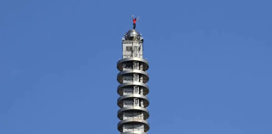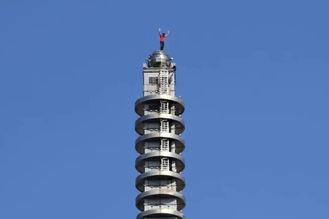 Εκείνος ανέβηκε σε μια γωνία του κτιρίου χρησιμοποιώντας μικρά προεξέχοντα σημεία σε σχήμα L ως στηρίγματα για τα πόδια του και έπρεπε να «manoeuvre» περιοδικά και να σκαρφαλώνει στις πλευρές των μεγάλων διακοσμητικών κατασκευών που προεξέχουν από τον πύργο.