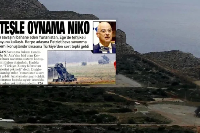 Νέο κύμα αντιδράσεων στην Τουρκία προκάλεσε η ανάπτυξη συστοιχίας αντιαεροπορικών πυραύλων Patriot στην Κάρπαθο, με την τουρκική εφημερίδα Sabah να στοχοποιεί ευθέως τον Έλληνα υπουργό Άμυνας Νίκο Δένδια. Στο σημερινό της πρωτοσέλιδο, η εφημερίδα κυκλοφορεί με τον τίτλο «Μην παίζεις με τη φωτιά, Νίκο», εκφράζοντας την έντονη δυσαρέσκεια της Άγκυρας για την ελληνική κίνηση.
