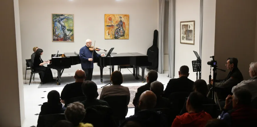 Στη συναυλία ακούστηκαν έργα για σονάτα, βιολί και πιάνο σε Μι ύφεση μείζονα, Ορ.18 (Richard Strauss), σονάτα για βιολί και πιάνο 1937 (Nino Rota), η σουίτα του John Williams  Pieces from “Schindler’s List” (για βιολί και πιάνο) και το Improvviso in re minore (Αυτοσχεδιασμός σε Ρε ελάσσονα) του Νino Rota.