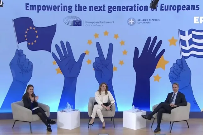 Στην Εθνική Πινακοθήκη βρίσκονται ο πρωθυπουργός Κυριάκος Μητσοτάκης και η πρόεδρος του Ευρωπαϊκού Κοινοβουλίου Ρομπέρτα Μέτσολα, συμμετέχοντας σε έναν ζωντανό διάλογο με νέους ανθρώπους, με επίκεντρο την Ευρώπη που διαμορφώνεται, τις προκλήσεις που αντιμετωπίζει και τις ευκαιρίες που ανοίγονται για τη νέα γενιά. Στη συζήτηση παρευρίσκεται και η υπουργός Κοινωνικής Συνοχής και Οικογένειας, Δόμνα Μιχαηλίδου.